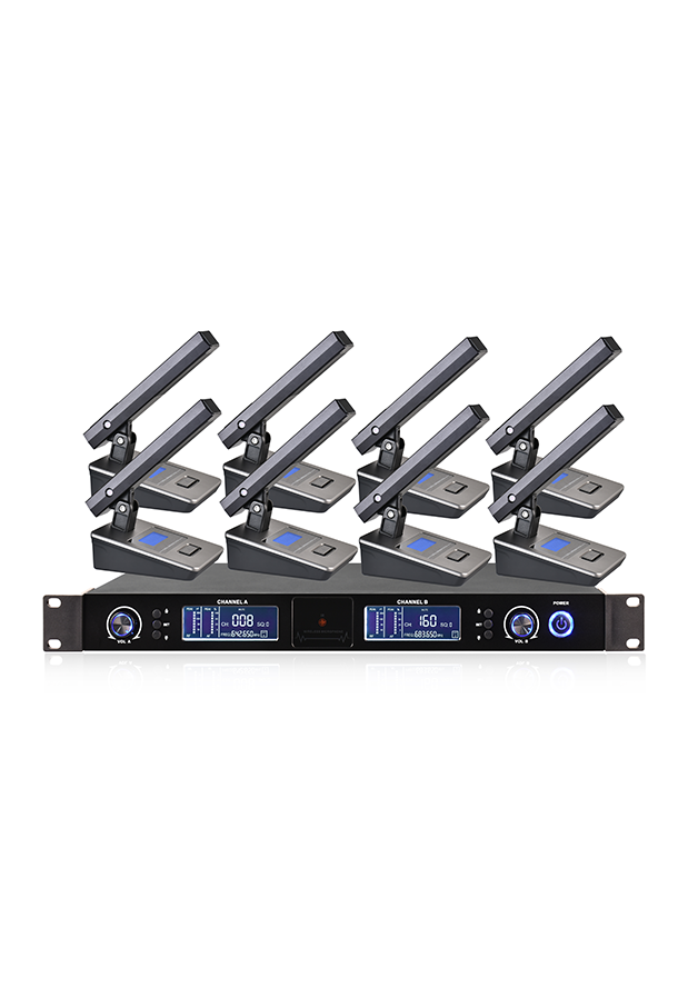 10、同一会场可五套主机同时使用,领夹话筒、手持话筒、会议话筒混合搭配使用,通用性强。