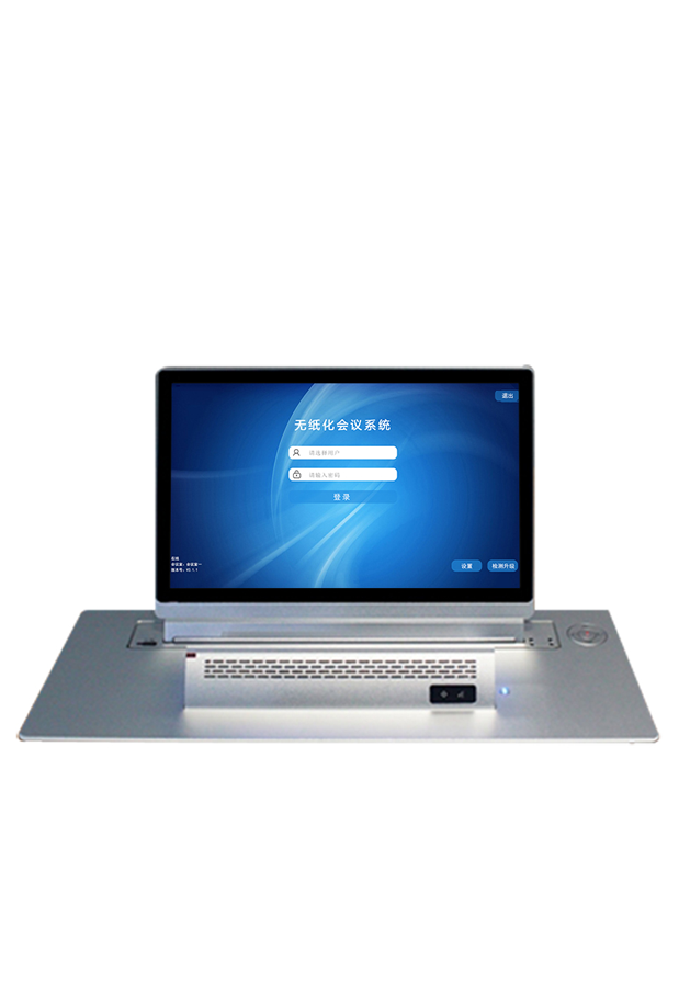 1.屏机联体,集成阵列麦克风一体化设计;屏幕和阵列麦克风均可独立电动控制升降;阵列话筒翻开式;
